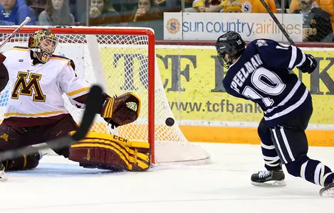 UNH, which defeated Clarkson Friday to advance to the championship game, falls to 1-1-0. Minnesota, who also won on Friday over Mercyhurst, captures the title and improves to 2-0-0. New Hampshire is now 4-1-1 in the tournament in three trips.