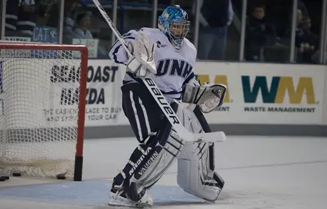 COLORADO SPRINGS, Colo. – Junior netminder Casey DeSmith (Rochester, N.H.) posted a 32-save shutout as the University of New Hampshire men's hockey team blanked Colorado College, 3-0 Saturday night at World Arena in Colorado Springs, Colo. Senior Kevin Goumas (Long Beach, N.Y.) had three points on two goals and an assist while classmate Nick Sorkin (Rockville, Md.) had a goal and two assists.