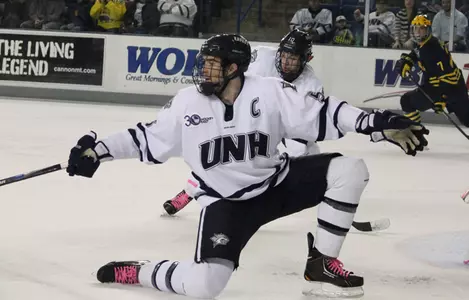 CHESTNUT HILL, Mass. – Senior blueliner Eric Knodel (West Chester, Pa.) tallied a pair of assists as the 20th-ranked University of New Hampshire men's hockey team fell to No. 9 Boston College 6-2 on Friday night at Conte Forum. Senior Jeff Silengo (Madison, Conn.) and junior Trevor van Riemsdyk (Middletown, N.J.) each tallied a goal in the game.