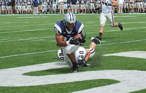 UNH's dominant first half included 336 total yards of offense, 14 first downs, five scoring drives and 40 points. Overall, the Wildcats finished with 551 total yards balanced by 288 yards in the air and 263 yards rushing. On the ground, junior tailback Nico Steriti (Toms River, N.J.) rushed for 88 yards and a pair of touchdowns on 11 carries, while redshirt freshman Dalton Crossan (Lake Ronkonkoma, N.Y.) added 81 yards on just seven carries (11.6 yards/carry). In the air, junior Andy Vailas (Bedford, N.H.) was 19 of 31 for 208 yards and a pair of touchdowns. Sophomore Sean Goldrich (West Haven, Conn.) was an efficient 5-for-6 for 80 yards and a touchdown. Justin Mello (Dartmouth, Mass.) led all receivers and notched his second straight 100-plus yard game with five catches for 101 yards. Harold Spears (Perkasie, Pa.) pulled down five catches for 38 yards and two TDs.