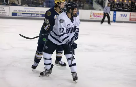 To start the third period, junior netminder Jamie Regan (Chagrin Falls, Ohio) came in for New Hampshire. Just 28 seconds into the third period, Regan made a big save on a one-time shot by Kirkpatrick from just outside of the crease. The Wildcats garnered the rebound and skated up ice with the puck as junior defenseman Brett Pesce (Tarrytown, N.Y.) sent a wrist shot on net, but Owsley made the glove save.