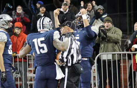 Senior wide receiver R.J. Harris (Odenton, Md.) and senior running back Nico Steriti (Toms River, N.J.) each scored a pair of touchdowns for the Wildcats. Harris had seven catches for 172 yards, including a 61-yard TD on a creative play that helped his team open up a fourth-period lead. With 304 career catches, Harris is tied with UNH legend David Ball as the all-time reception leaders in CAA history.