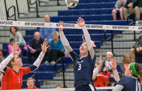 New Hampshire fell in the deciding set, 22-25. Muses notched five kills on nine swings with just one error in the stanza. Junior middle blocker Cassidy Croci (Sylvania, Ohio) added three kills. The 'Cats opened the third set with an 8-2 lead until the Huskies clawed back to even the score at 13-13. Connecticut rattled off a 9-4 stretch for a 22-17 advantage late in the frame. UNH narrowed the deficit down to one with four consecutive points. However, UConn curbed the rally and clinched match point.