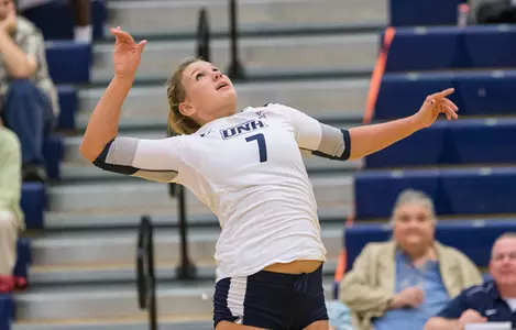 STORRS, Conn. -- The University of New Hampshire volleyball team split a pair of matches, downing Central Connecticut State University, 3-2, after falling to Indiana University, 3-1, Saturday to close out play at the University of Connecticut Classic.