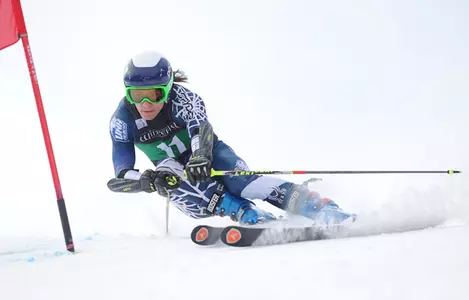 Powered by a 3-4 finish from Lisa Wedsjö (Saltsjöbaden, Sweden) and Randa Teschner (Petawawa, Ontario), the women's alpine team scored 111 points to finish second to Vermont (134) in giant slalom. Wedsjö dashed to a time of 2:12.07 for 44 points, and Teschner clocked in at 2:12.33 to notch 41 points. Kelly DiNapoli (Ludlow, Vt.) placed 15th in 2:14.64 for 26 points.