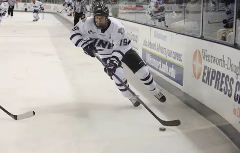 With just under eight minutes to play in the first period, freshman netminder Danny Tirone (Trumbull, Conn.) denied a shot attempt by the UVM attack. Vermont's Jake Fallon picked up the rebound and attempted to make a play, but junior blueliner Harry Quast (Chagrin Falls, Ohio) stripped him of the puck and cleared it out.